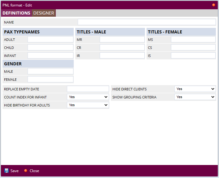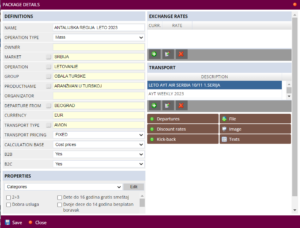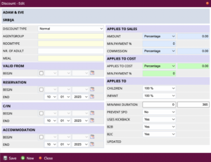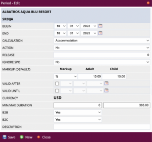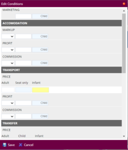 4. New – enter commissions for accommodation in percentages, commissions for transport in percentages.