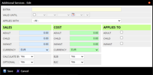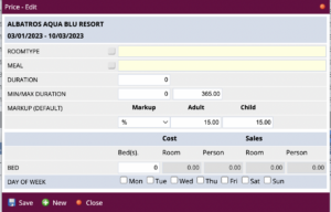 • In the last menu, go to New and enter: the room type, service, cost and sales prices.