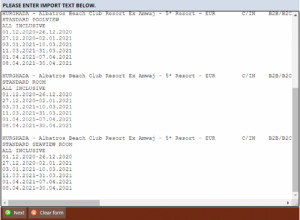 • Cost only : This option can be used only with import style “update only”. It will update only the cost prices where system find exact period, prices, room type etc. matches.