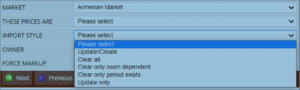 • Sales only : This option can be used only with import style “update only”. It will update only the sales prices where system find exact period, prices, room type etc. matches.