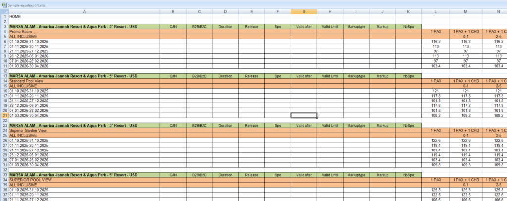Between all column Markup Type/Value are very specific depends on your import style. You may override the values on excel from import wizard. If you are importing as prices are sales prices and using markups; system will create the contrary price by using defined markup. For example if you have defined markup %20 and hotel price is 200 EUR and importing as sales prices than. SALES PRICE IS : 200 EUR COST PRICE ID : 200 EUR X – %20 = 160 EUR