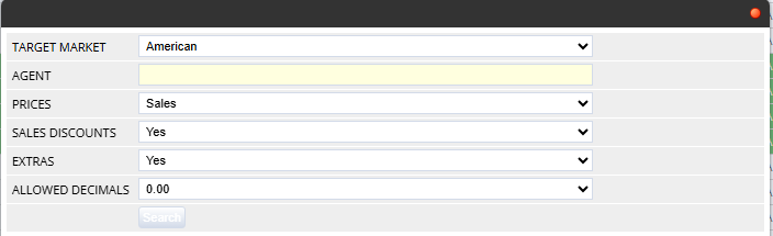 Export prices option window will open. For b2b users Target market and Agent options will be set automatically.